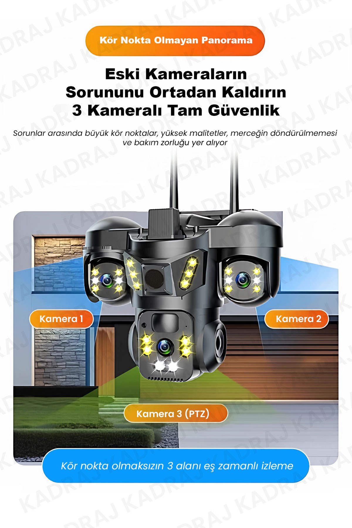 360° Panoramik Görüş – 3 Lens ile Tam Kapsama Alanı
