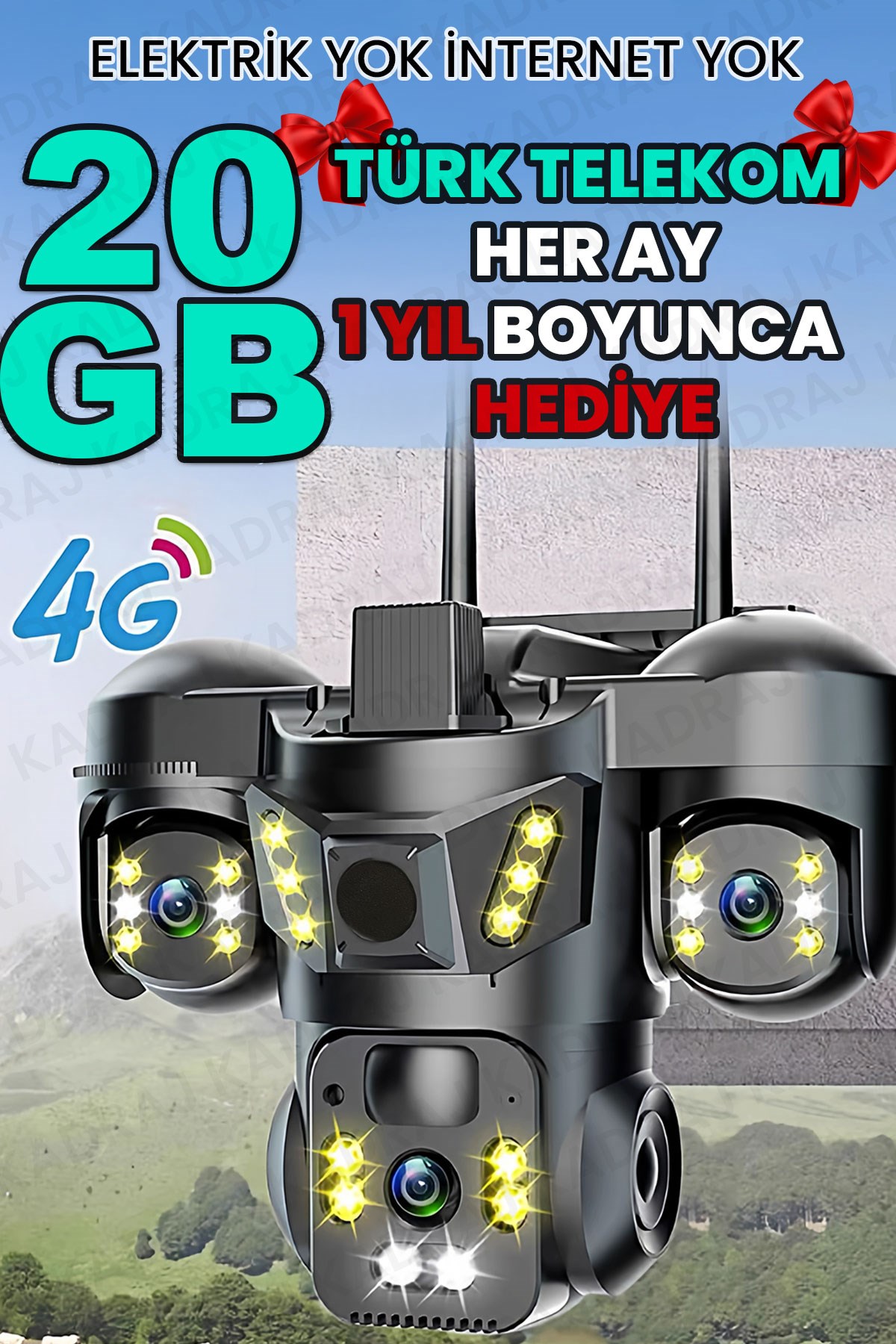 Sim Kartlı Kamera, 3 Kameralı, Solar Panelli, 20GB TURK TELEKOM Hat Dahil, İnsan Algılama, Sesli